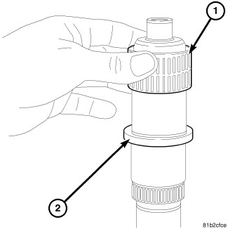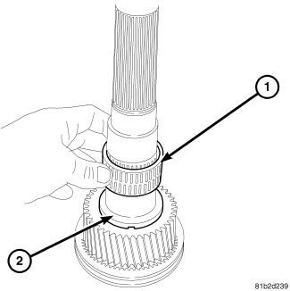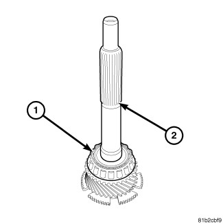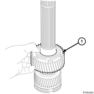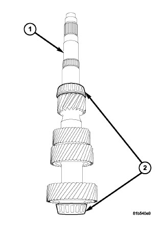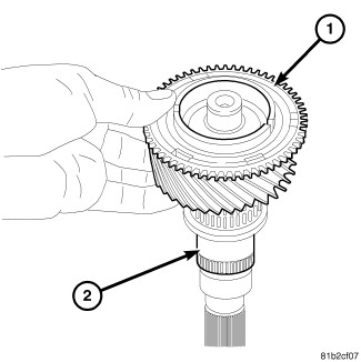 11. Install second gear bearing spacer (1) on mainshaft (2).