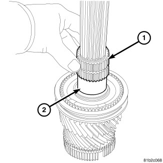 5. Install 3-4 synchronizer hub (1) on mainshaft (2).