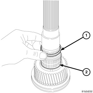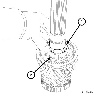 6. Install 3-4 synchronizer hub (1) snap ring (2) on mainshaft.