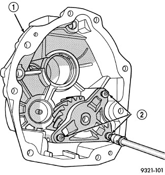 15. Install 1-2 synchronizer hub sleeve (1) and detents (2).