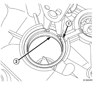 3. Install mainshaft bearing cup (2) snap ring (1).