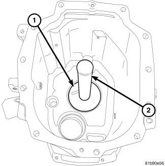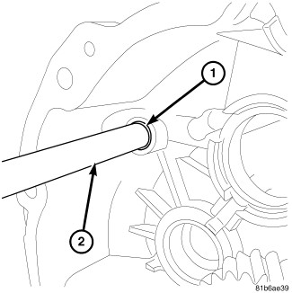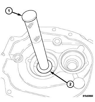 2. Install shift rail bearing with Handle (1) and Installer (2).