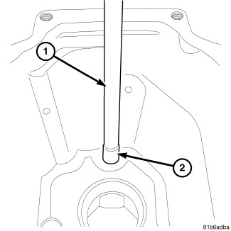 7. Apply Mopar (R) Lock AND Seal Adhesive or equivalent on idler gear bracket bolts (2). Install bolts (2) and tighten to 30 Nm (22 ft. lbs.).