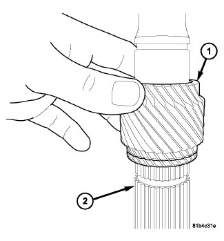 8. Install 3-4 synchronizer sleeve (1) on 3-4 synchronizer hub (2).