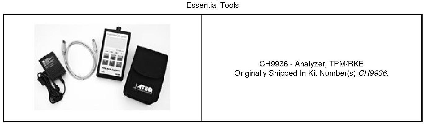 NOTE: Always be certain to select proper vehicle line and model year when using this tool, as the tool will automatically use the correct protocol to attempt to read the TPM sensor. If the incorrect vehicle line and/or model year is selected, the TPM sensor will not respond to the tool.