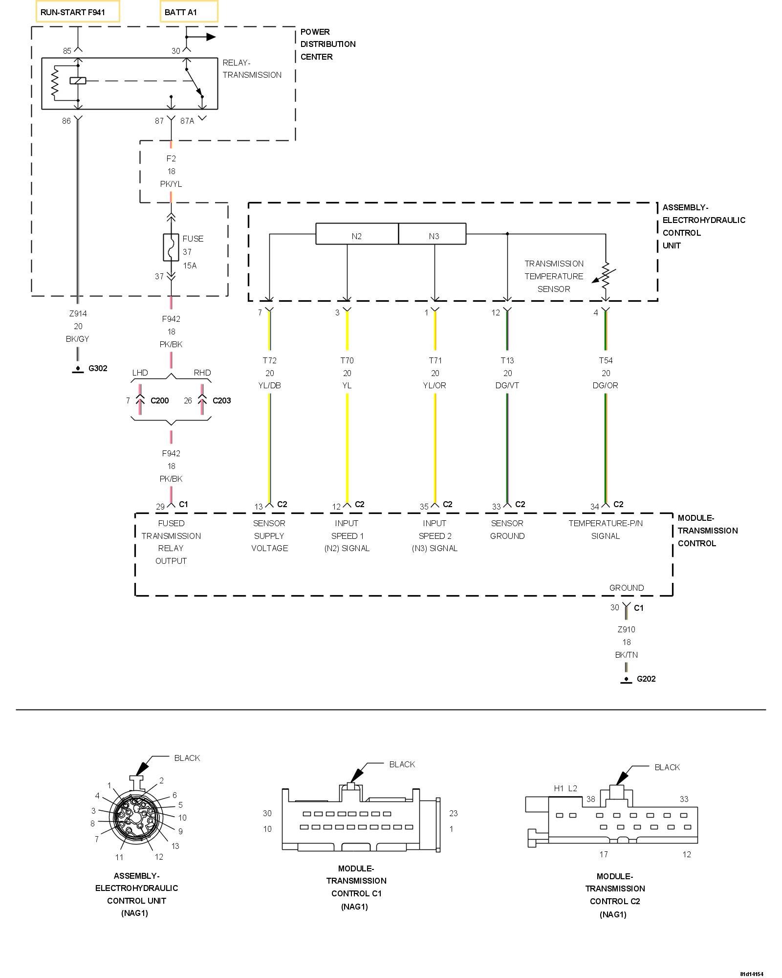 - Using the schematics as a guide, check the Transmission Control Module (TCM) terminals for corrosion, damage, or terminal push out. Pay particular attention to all power and ground circuits. If no problems are found, replace the TCM. NAG1