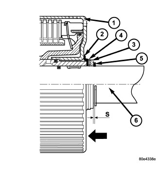 8. Inspect axial play (Figure 2) between shim (10) and retaining ring (11). Check axial play "S" between shim (10) and retaining ring (1) using a feeler gauge. Clearance should be 0.15-0.6 mm (0.006-0.024 in.). Shims are available in thicknesses of 3.0 mm (0.118 in.), 3.4 mm (0.134 in.), and 3.7 mm (0.146 in.). Adjust as necessary