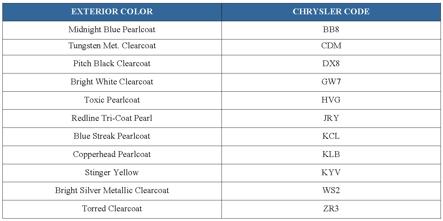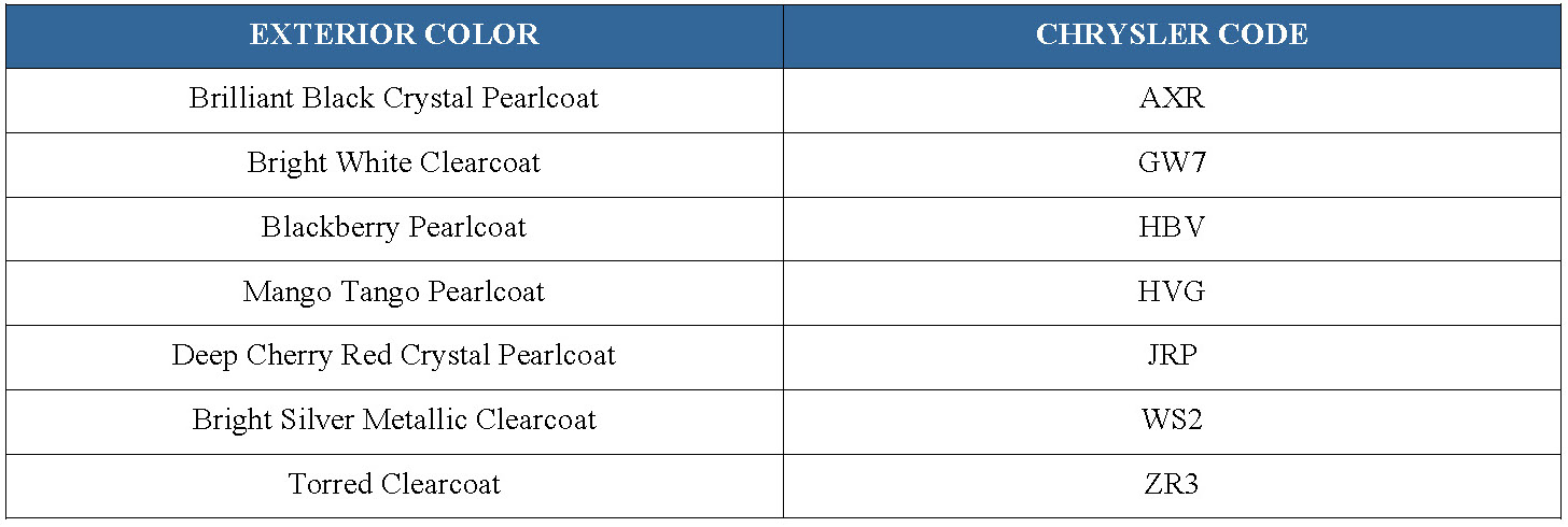 Exterior vehicle body color(s) are identified on the Vehicle Certification Label or the Body Code Plate.