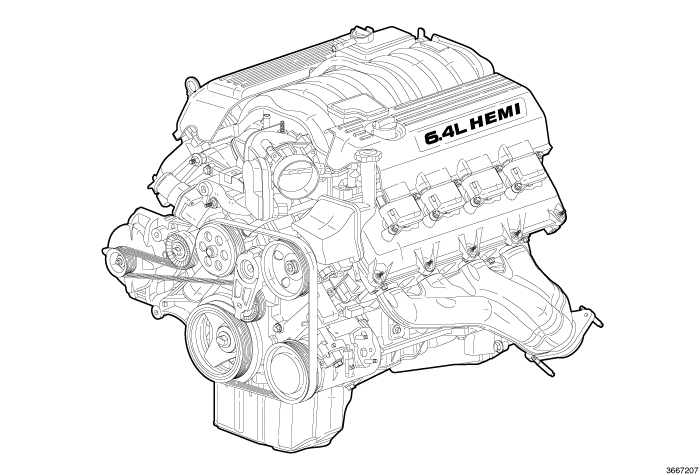 The 6.4L HEMI engine also has improved horsepower, torque and fuel economy as compared with the 6.1L HEMI engine. This is achieved with the larger displacement and the following Technical Improvements: