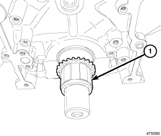 1. Install the crankshaft sprocket (1) and position halfway onto the crankshaft.