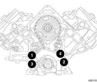 12. Using the sequence shown, tighten the oil pump retaining bolts to 28 Nm (21 ft. lbs.).