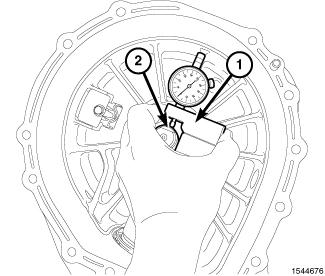 7. Zero Dial Indicator (1) on L-block (2).