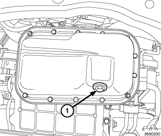 9. Install the drain plug (1) in the oil pan and tighten to 27 Nm (20 ft. lbs.).