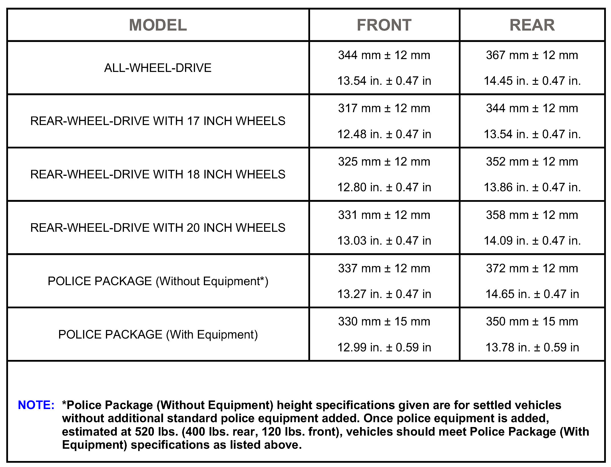 CURB HEIGHT SPECIFICATIONS