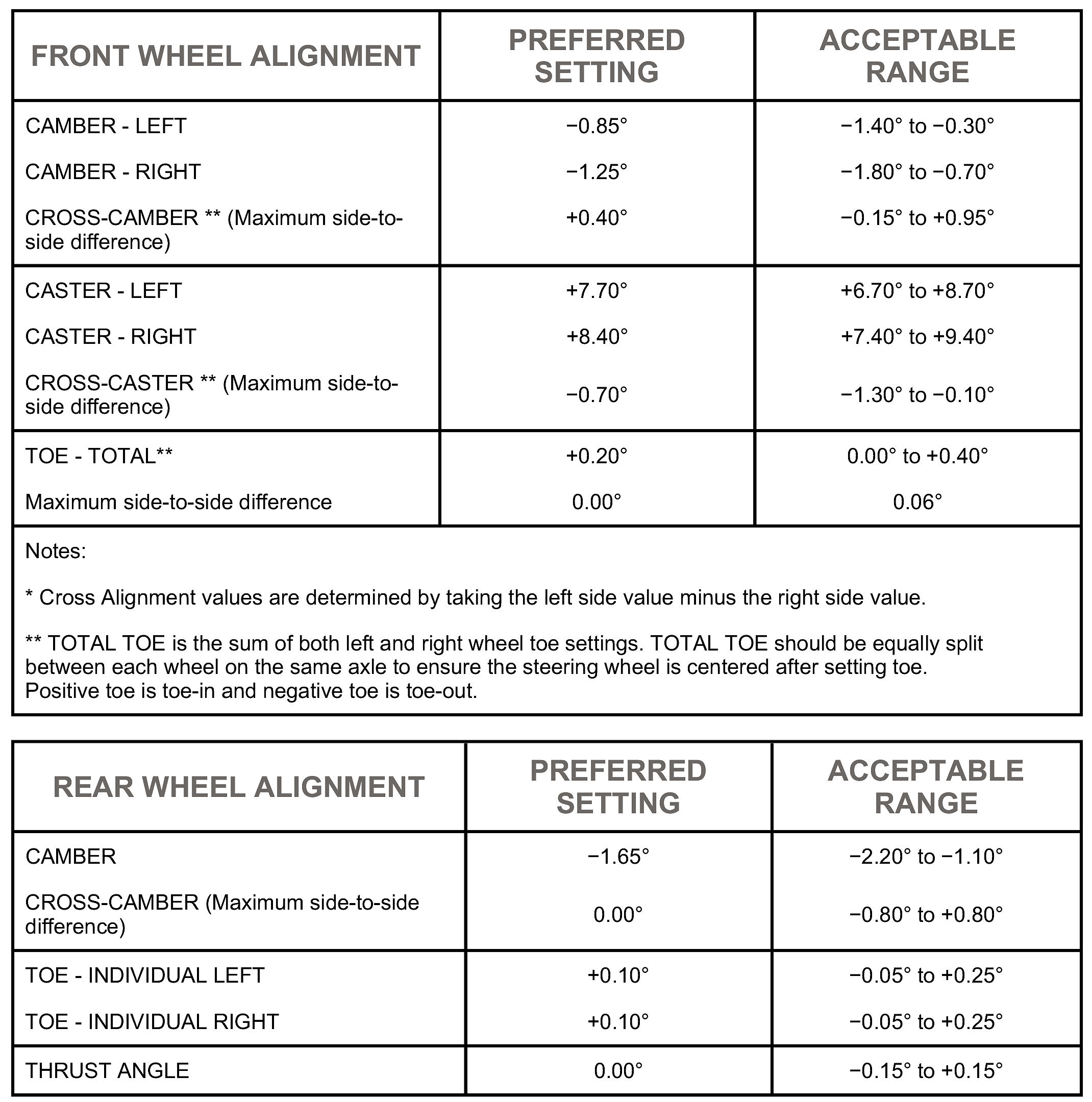 All wheel alignments are to be set at curb height.