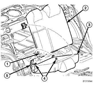 2. Remove the four nuts (1) and (3) attaching seat back.
