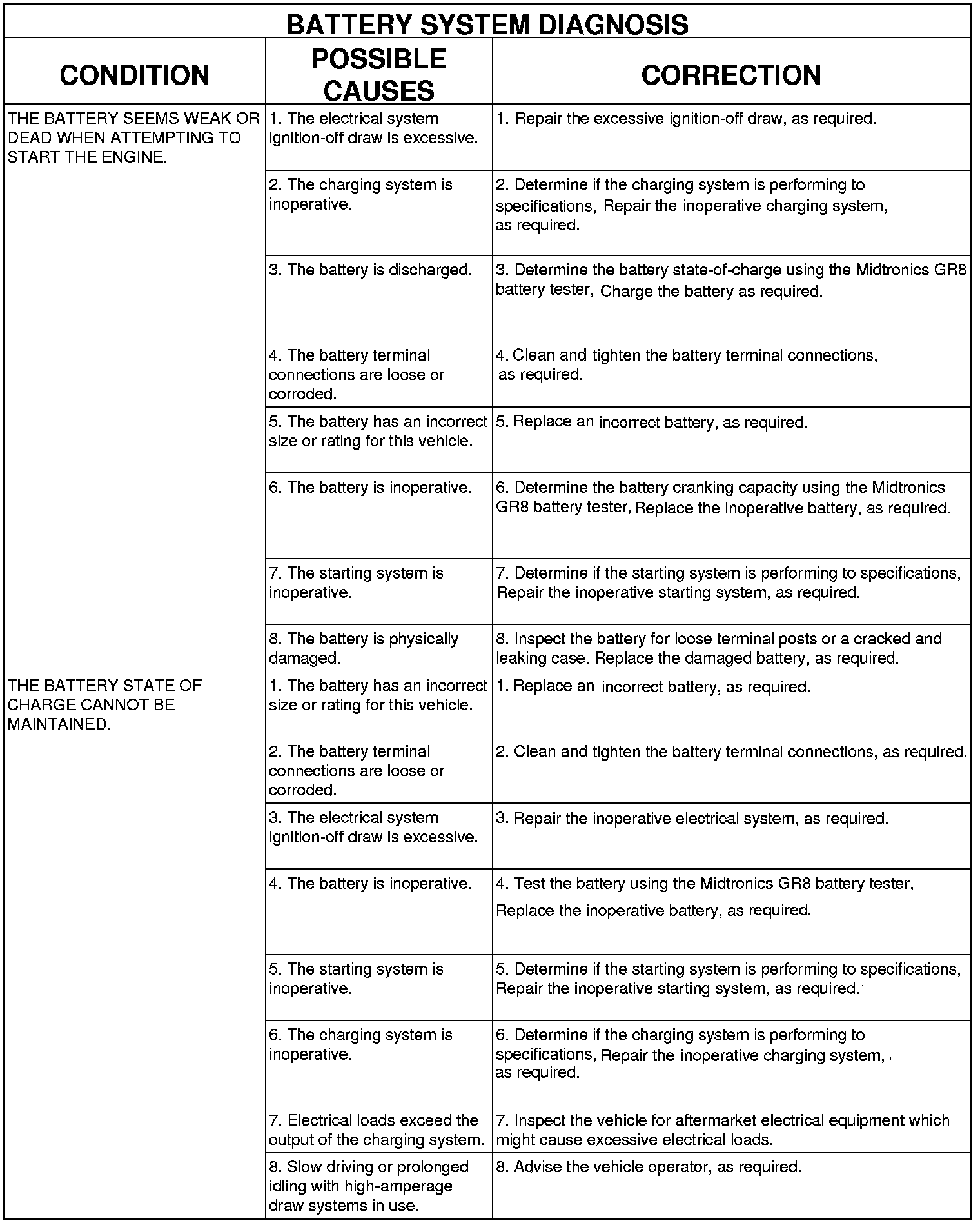 The Midtronics GR8 battery system tester is designed to help diagnose the cause of a defective battery. GR8 Battery Tester / Charger for directions on using the Midtronics GR8 battery tester.