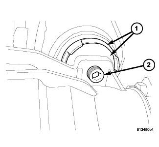 6. Install two rear axle-to-crossmember bolts (1) and torque to 220 Nm (162 ft. lbs.).