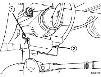 3. Remove the two interlock mechanism to steering column attaching screws (1). Remove the interlock mechanism.
