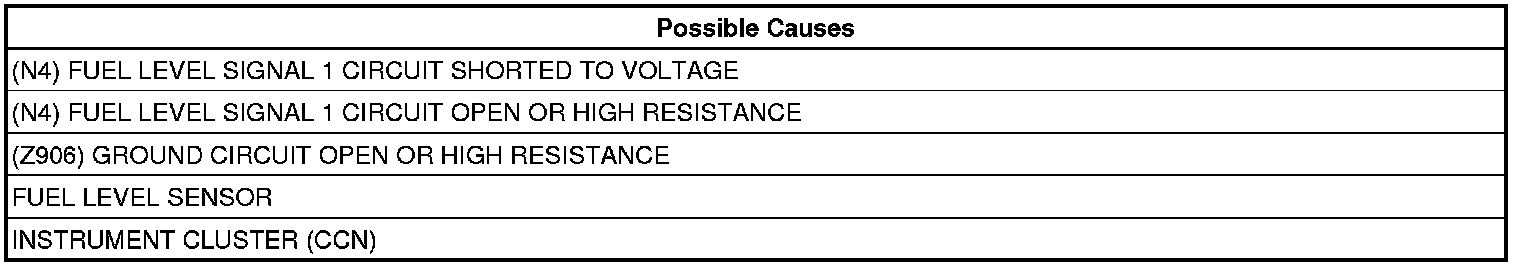 - Repair the open circuit or high resistance in the (N4) Fuel Level Signal 1 circuit.