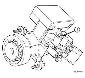 17. Remove WCM retaining screw (1) and flex the retaining tab to release the WCM from the ignition switch.