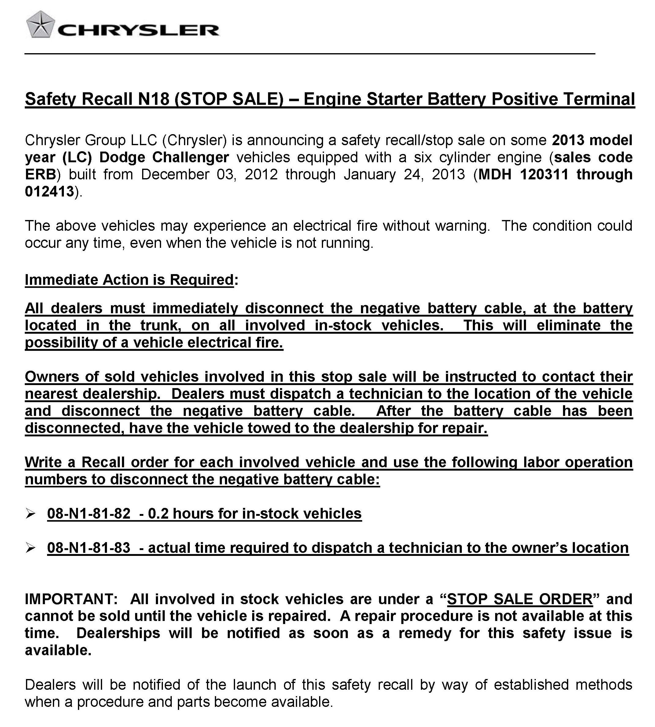 Canada - Recall - Engine Starter Positive Battery Terminal: Overview