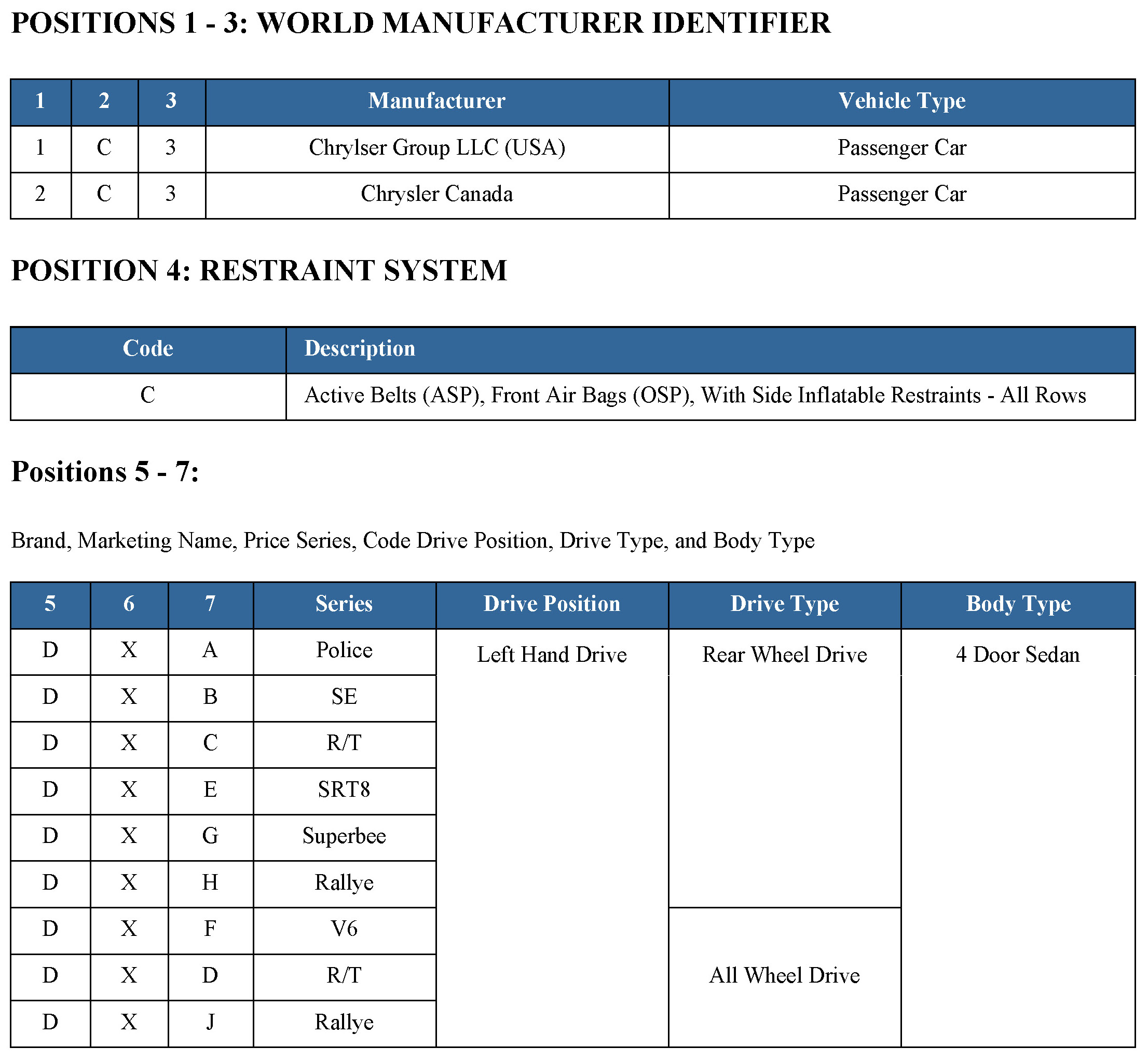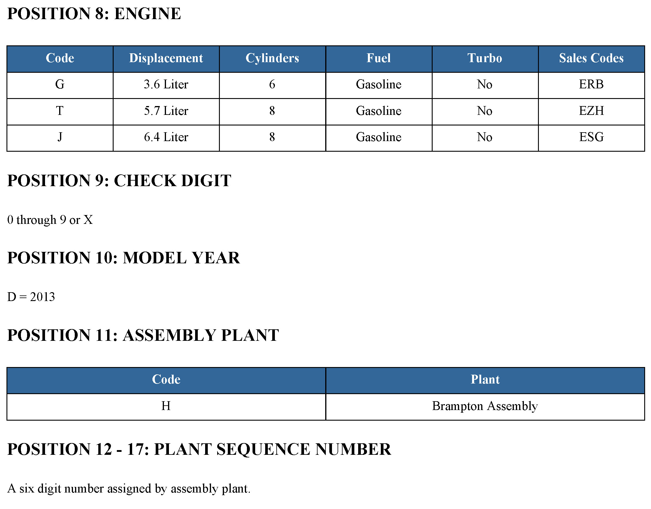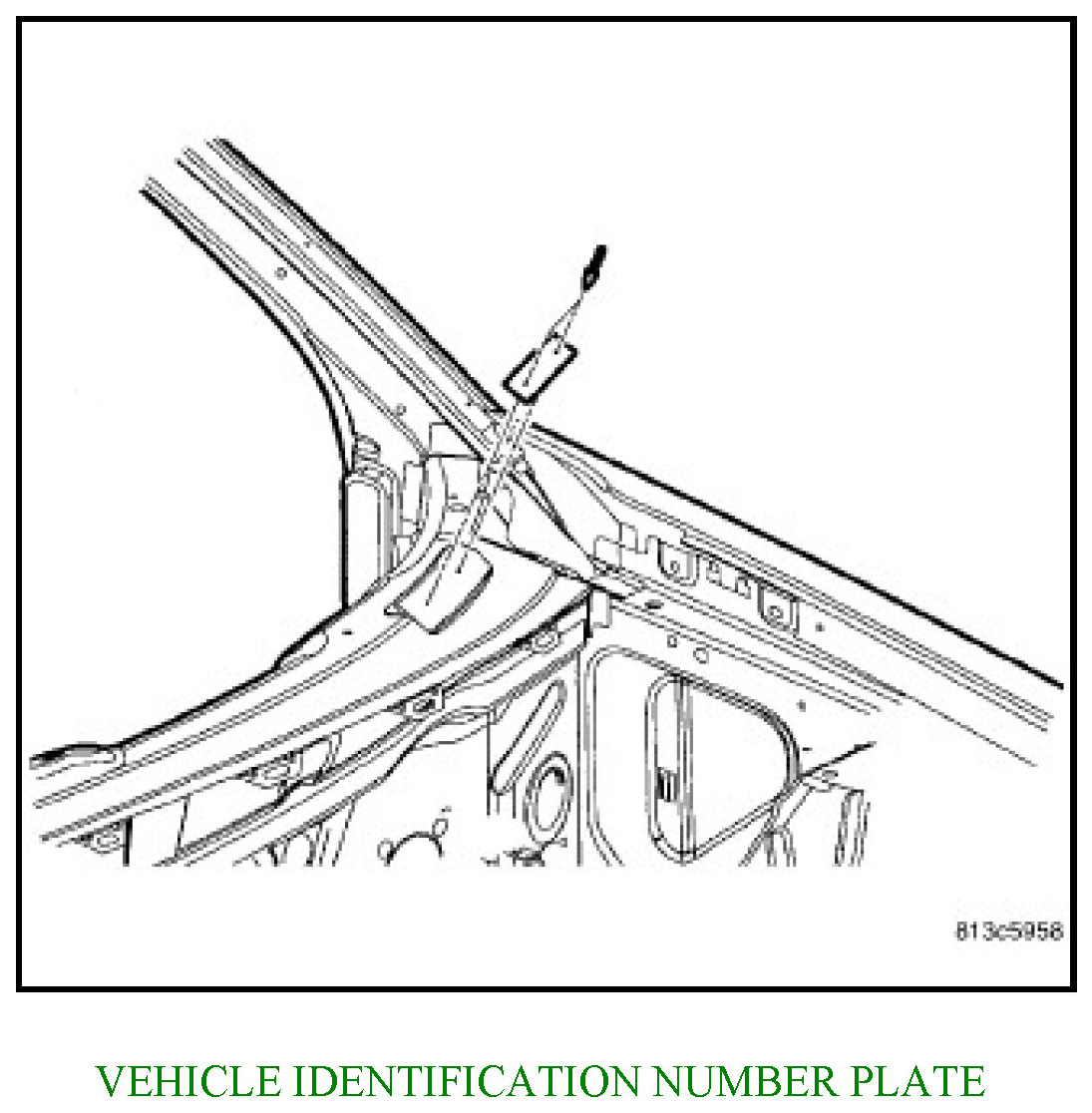 The Vehicle Identification Number (VIN) plate is attached to the top left side of the instrument panel. The VIN contains 17 characters that provide data concerning the vehicle. Refer to the decoding chart to determine the identification of a vehicle.