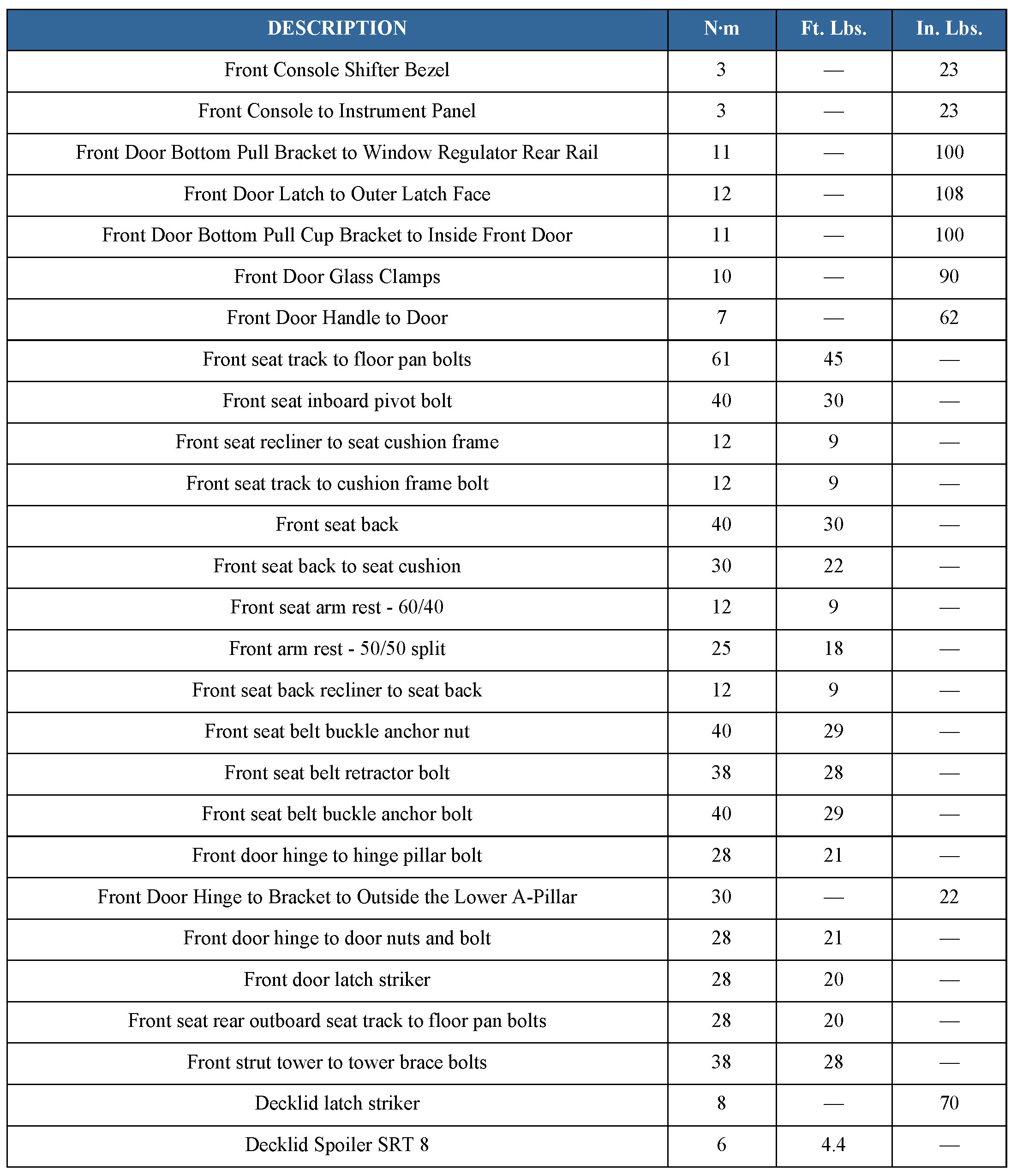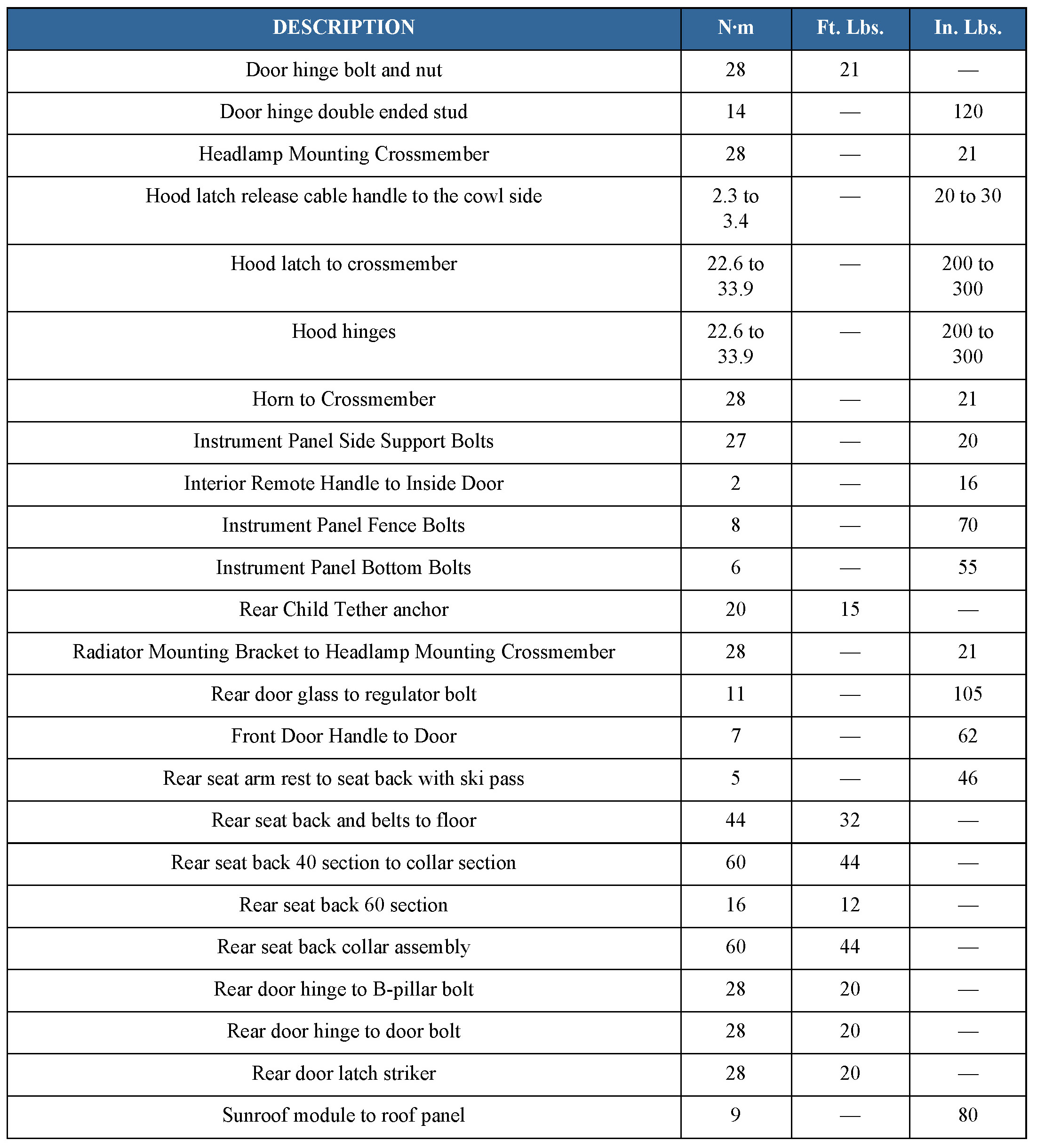 TORQUE SPECIFICATIONS