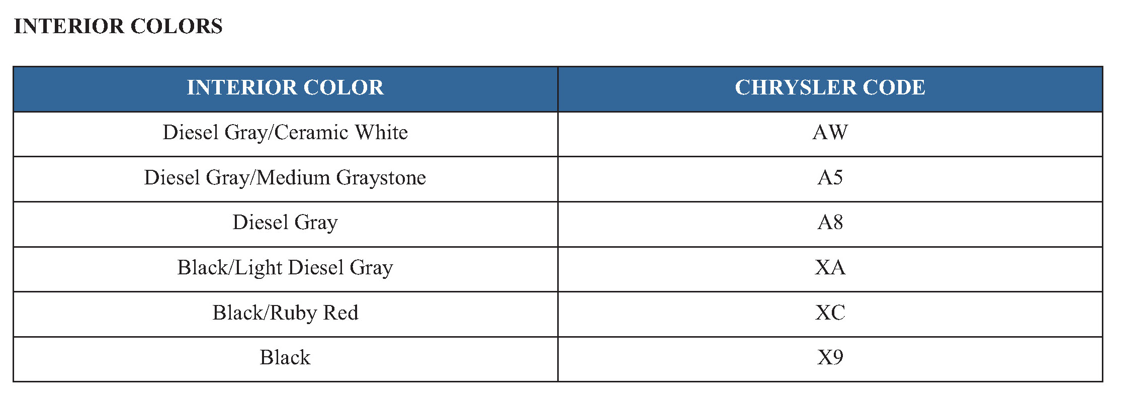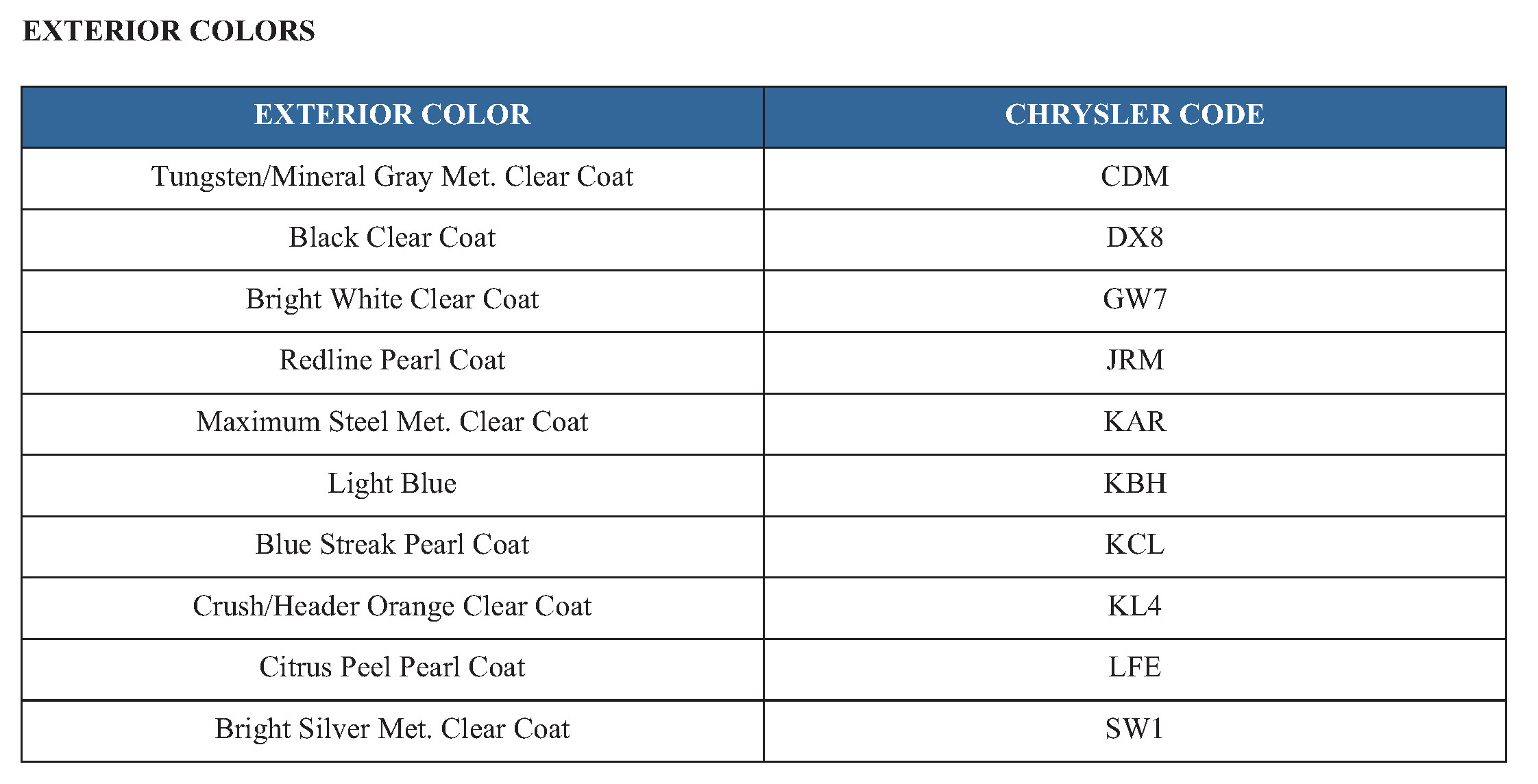 Exterior vehicle body color(s) are identified on the Vehicle Certification Label or the Body Code Plate.