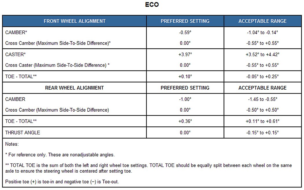 NOTE: All wheel alignments are to be set with the vehicle at curb height.