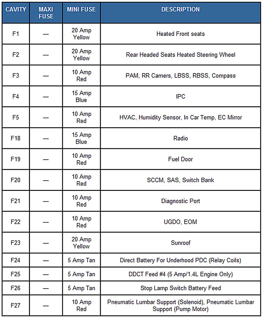 An Interior Power Distribution center is located driver side under the dash to the side of the steering column opening. This fuse block contains MINI fuses.