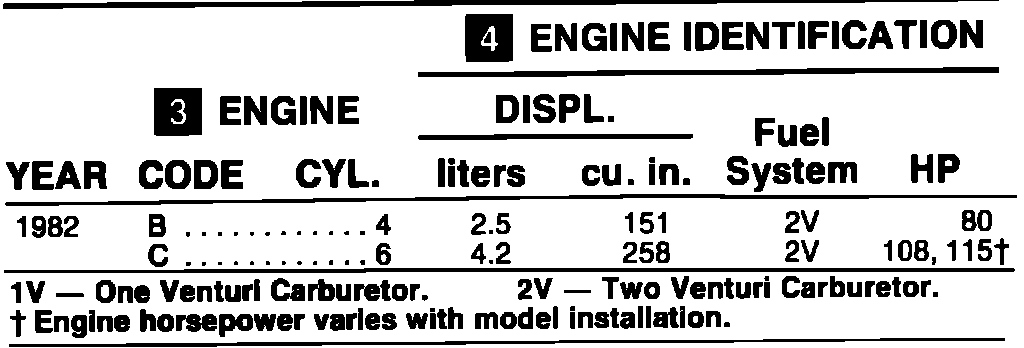 ENGINE IDENTIFICATION 1982: