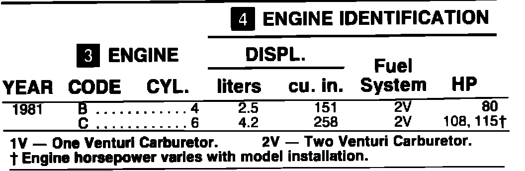ENGINE IDENTIFICATION 1981: