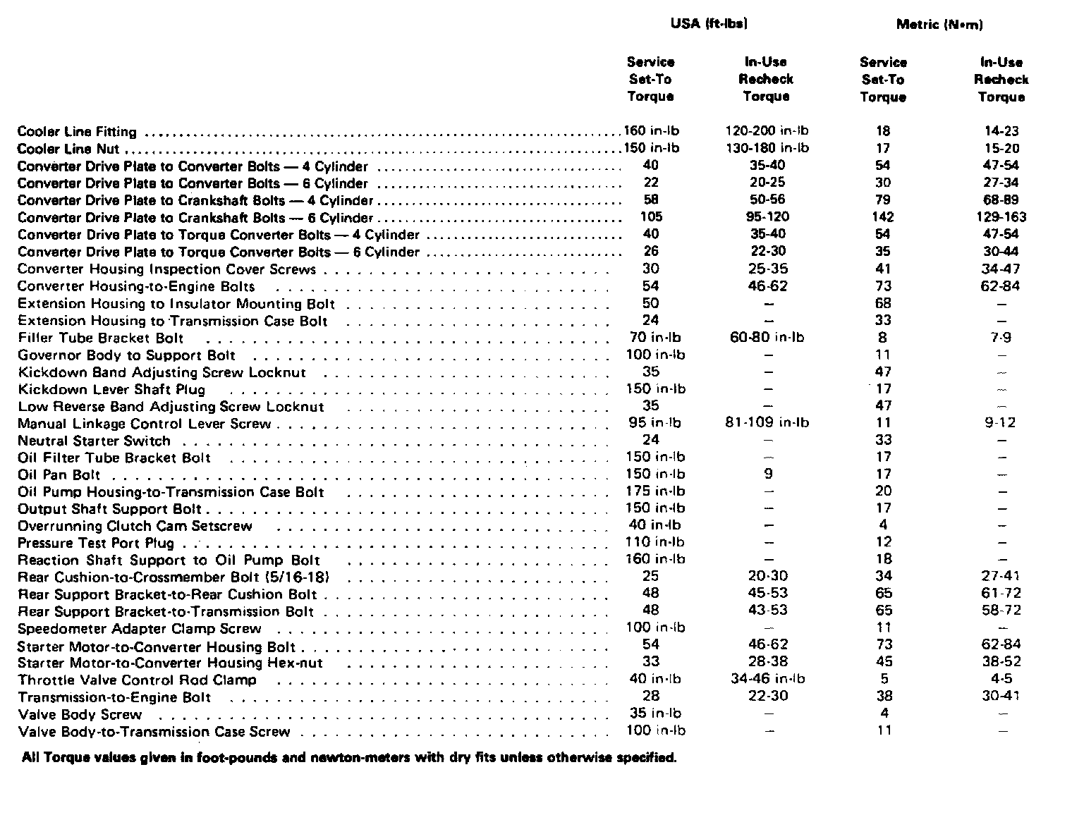 *There are two versions of the 904 Type transmissions, one has a lock-up Torque Converter.
