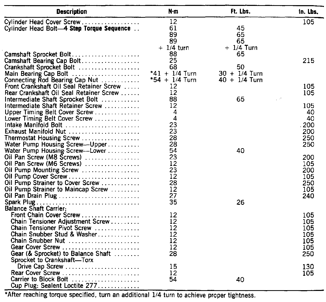 Tightening Specifications