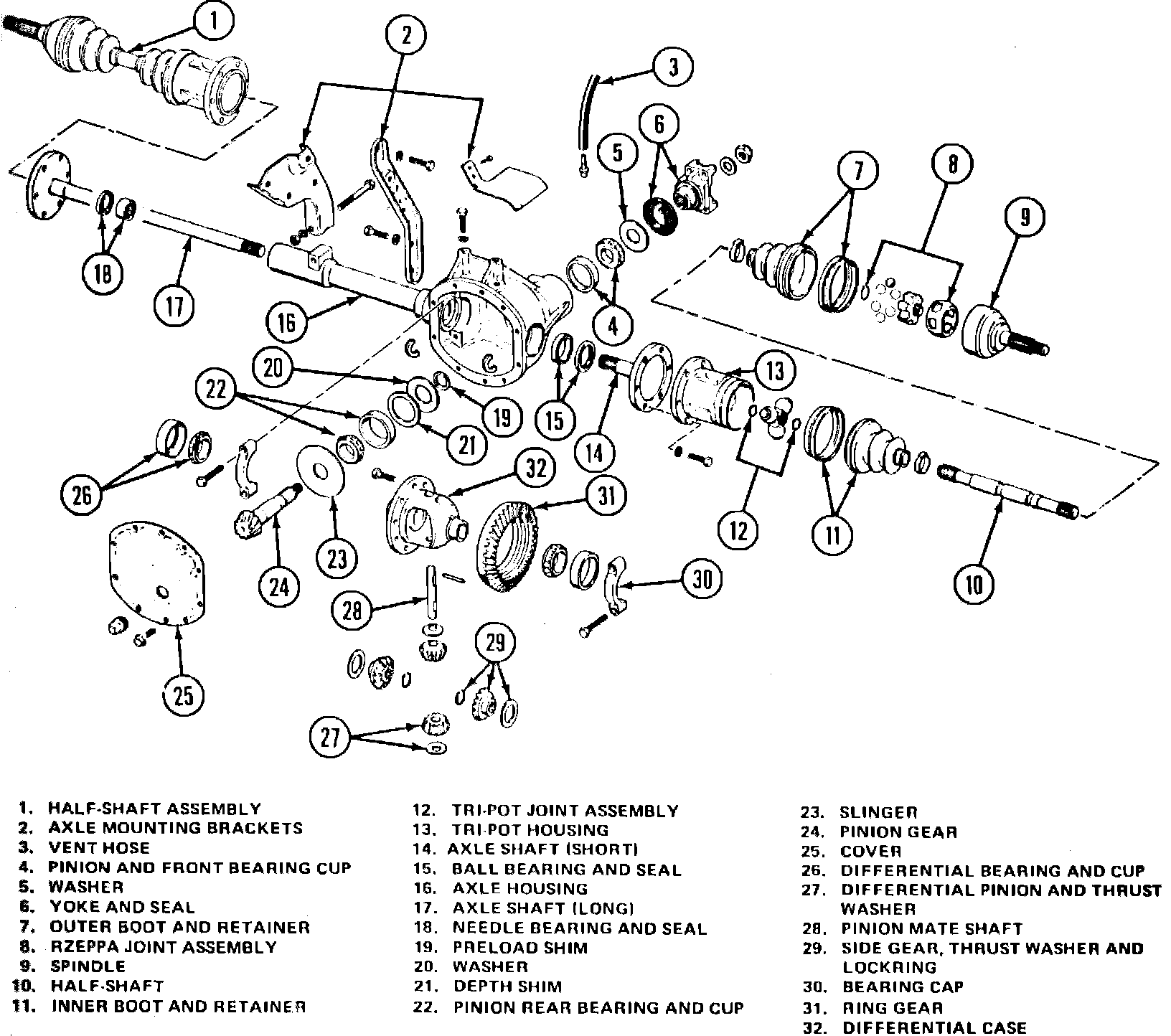 Fig. 1 Front axle assembly. 1982---84 Eagle less Select Drive System: