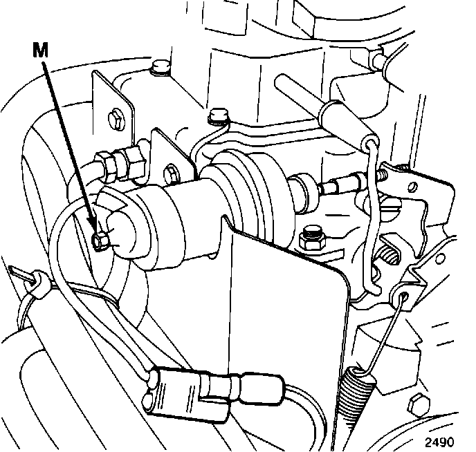 13. Adjust the Sole-Vac throttle positioner (M) to obtain the specified engine rpm. Refer to the Vehicle Emission Control Information label.
