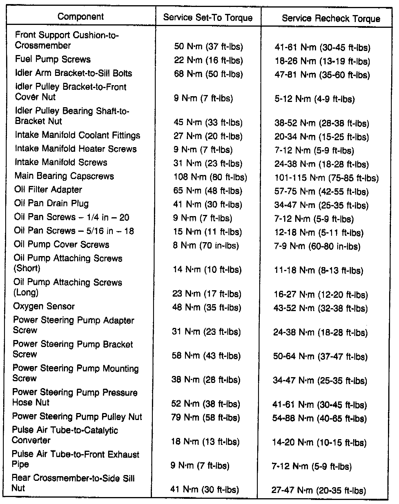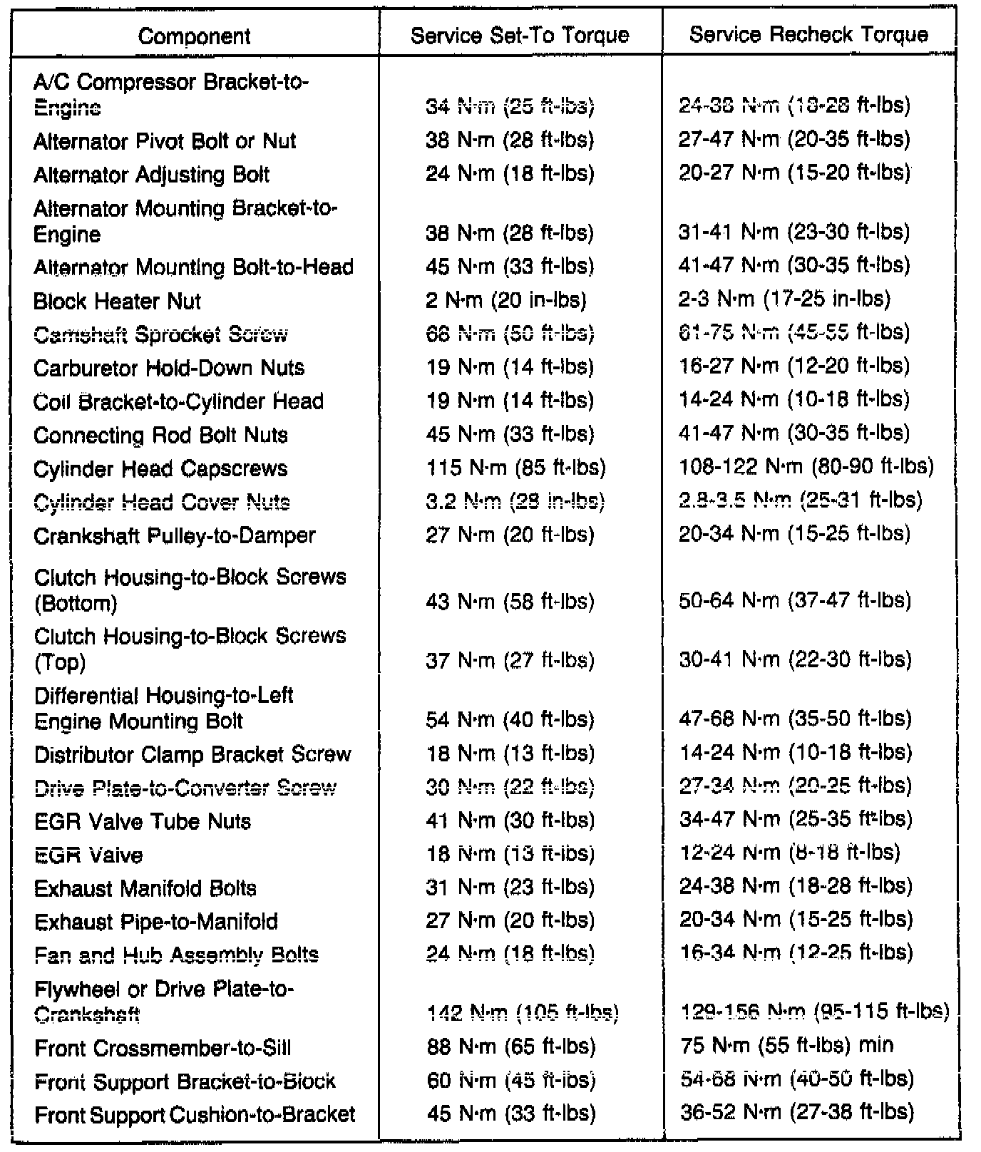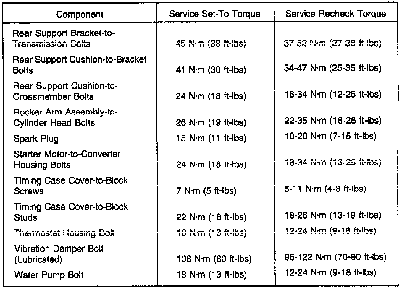 Torque Specifications: