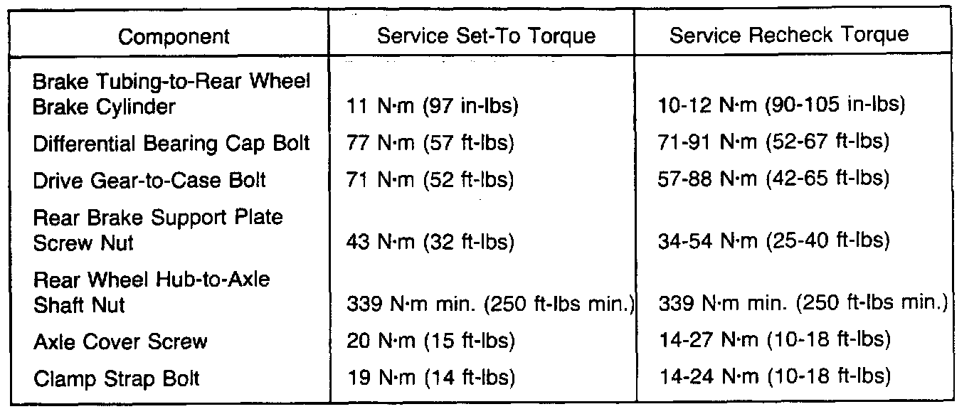 Torque Specifications, Rear: