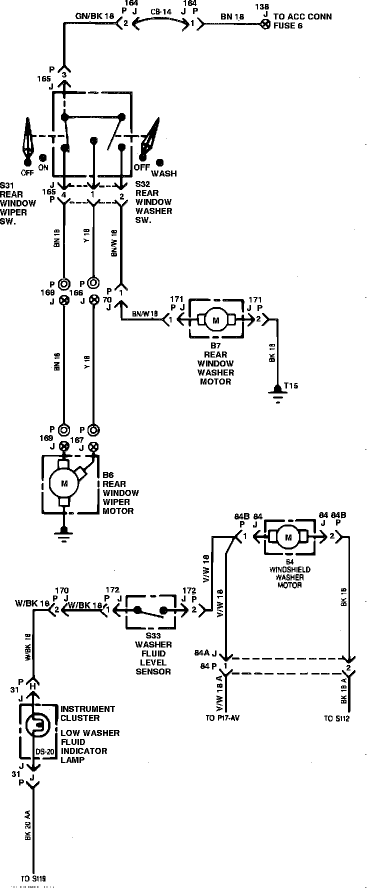 Rear Window Washer & Wiper Wiring Circuit: