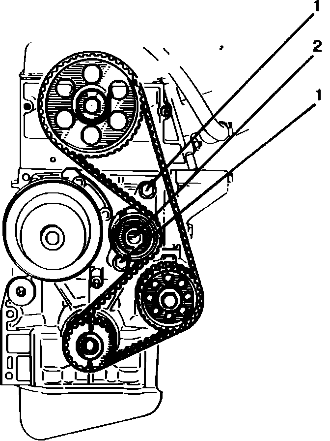 3. Install timing belt on sprockets, ensuring belt is tight between crankshaft and idler shaft sprockets, and between idler shaft and camshaft sprockets.