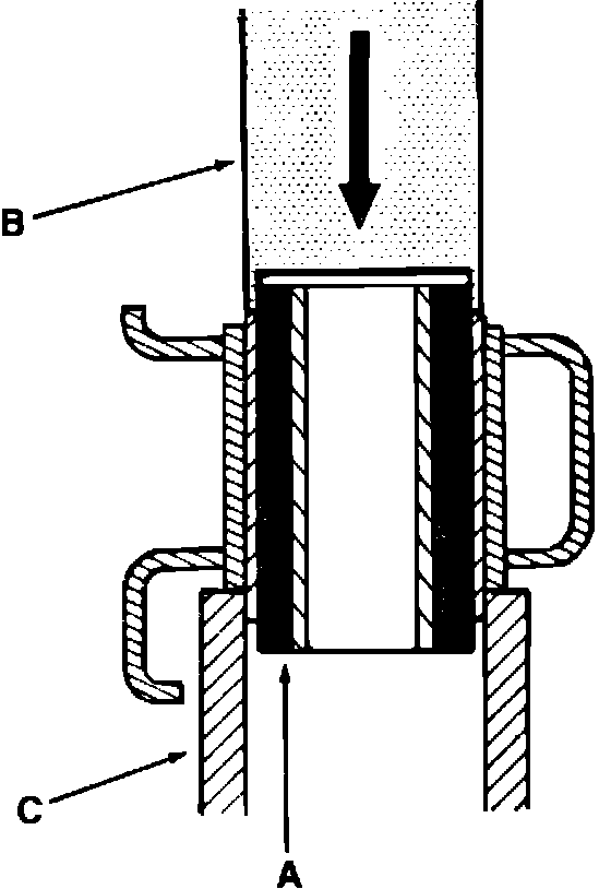 2. Use suitable size sockets of sections of pipe as a bushing driver (B) and a bushing receiver (C).