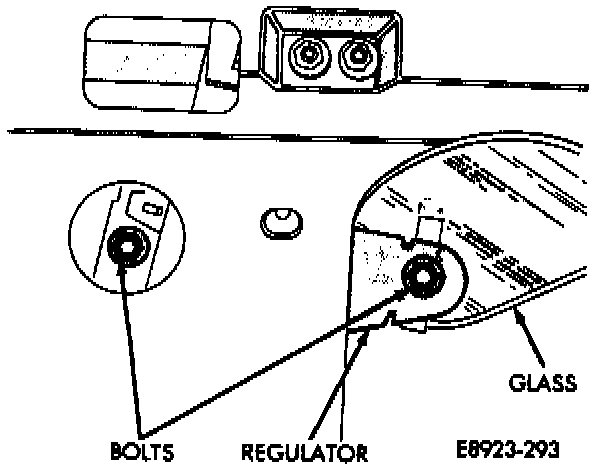 3. Remove bolts holding glass to window regulator.