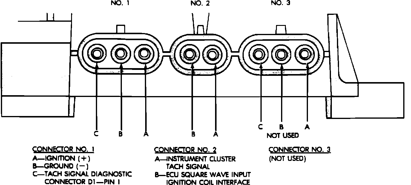 2. Disconnect connector No.1 on the Ignition Control Module and check terminal B to insure that there is a good ground, if not, repair as needed.