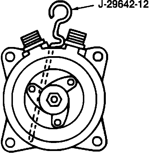 2. Insert dipstick J-29642-12 through oil filler plug hole to the right of piston connecting rod until dipstick stop contacts compressor housing.