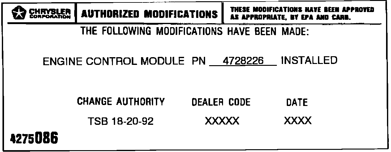 2. Type the required information on the Authorized Modification Label, as show, and attach it near the VECI label.