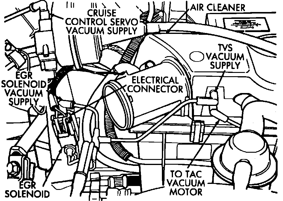 7. If the air valve manually operates freely and the hoses are not leaking or disconnected, connect a vacuum hose from an intake manifold source directly to the vacuum motor and start the engine.