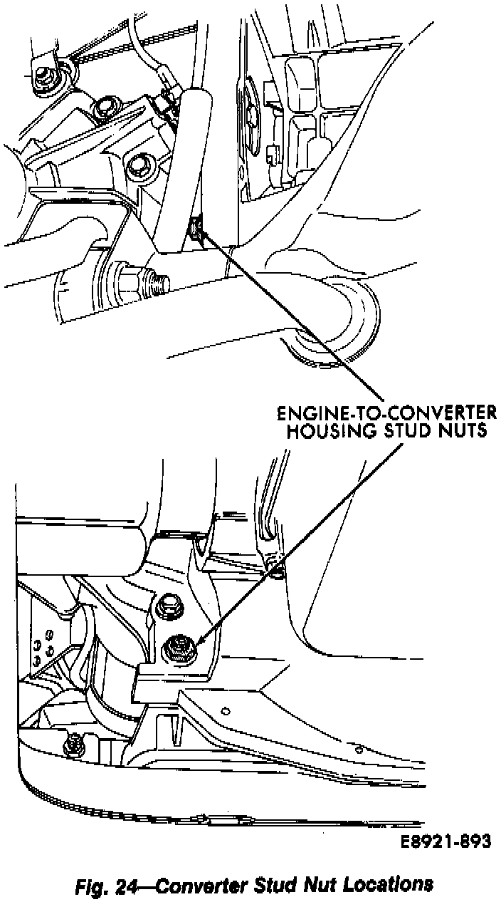 37. Remove engine-to-converter housing stud nuts.