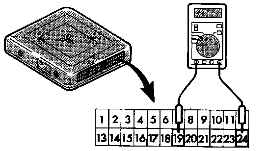 3. Connect a digital voltmeter between terminal 19 (throttle position sensor output voltage) of the engine control unit and terminal 24 (ground).