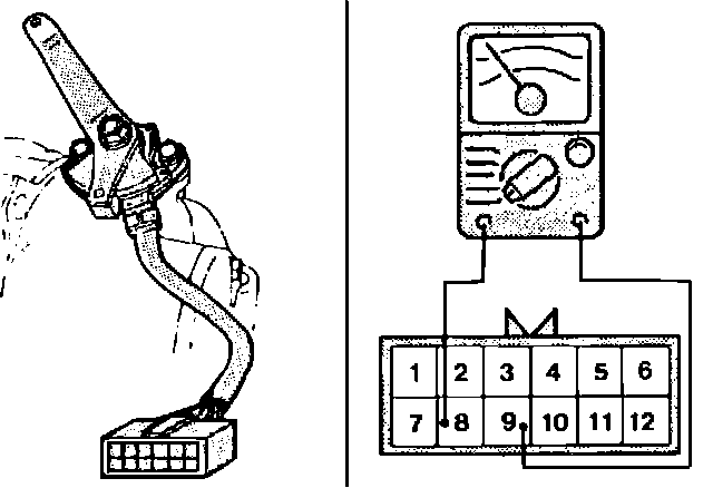 Ensure there is continuity between connector terminals 8 and 9 when shift lever is moved to N range.